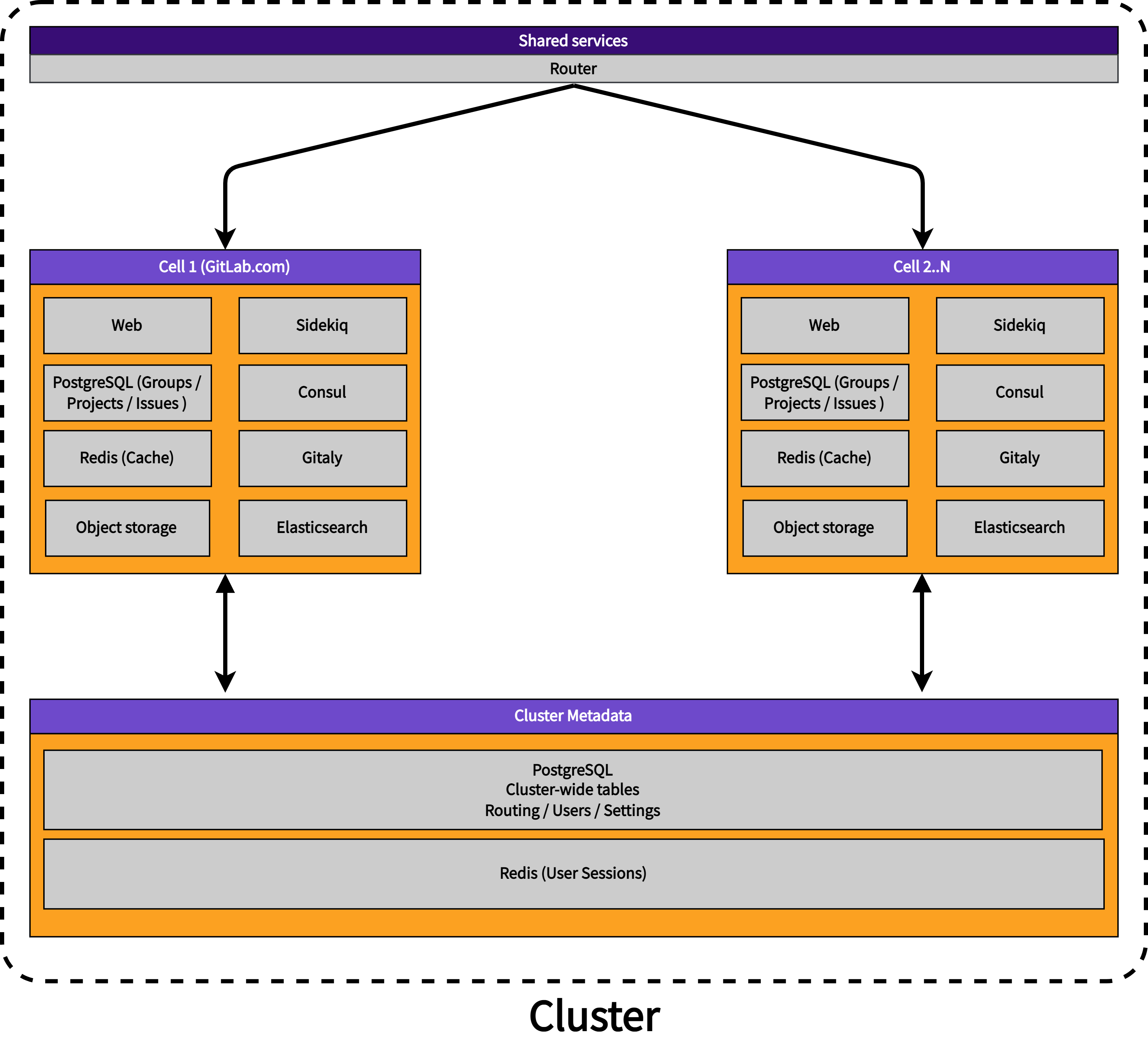 This also indicates that Cells should be able to work with different versions of the underlying infrastructure components: PostgreSQL version, Redis version, Gitaly version, Elasticsearch version.