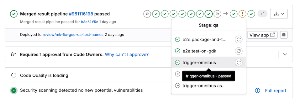 pipeline for that commit will have a trigger-omnibus job in the qa stage you